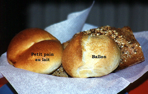 Remarques. À ne pas confondre avec le petit pain (au lait), v. exemples ci-dessus. Les petits pains au lait (les Weggli des Suisses alémaniques) sont traversés d’une fente profonde imprimée à la pâte avant la cuisson et qui les divise en deux portions, alors que les ballons sont plutôt sphériques et ne sont couronnés que d’une petite marque faite au couteau dans la pâte pendant la cuisson.