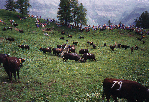 ★ L’inalpe se caractérise en particulier par des combats entre les vaches (race d’Hérens) ;